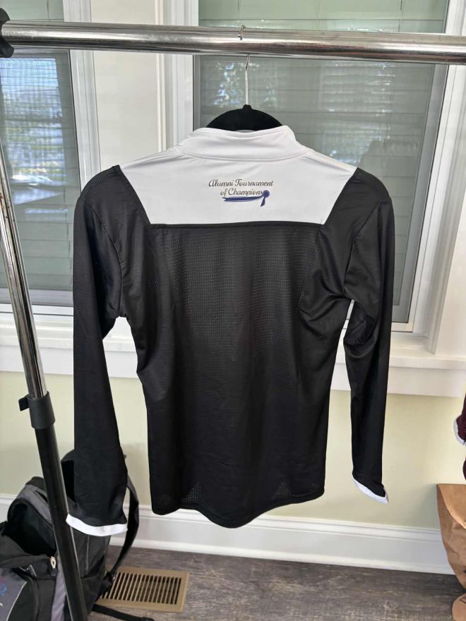 This is a lightweight technical show shirt. Bib is white with zip closure.